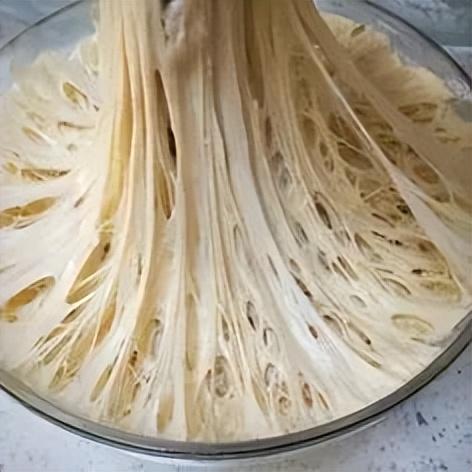 随着面团发酵时间的推移,面筋逐渐形成,形成一个自然有弹性的面团。