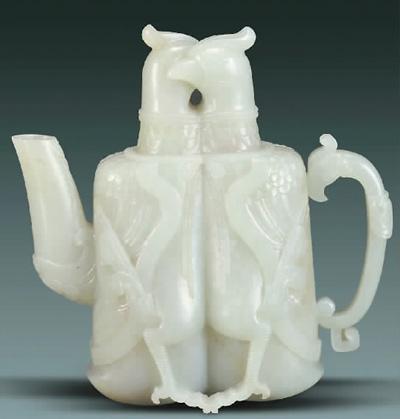 清“乾隆”款青玉双凤交颈壶。武汉博物馆供图