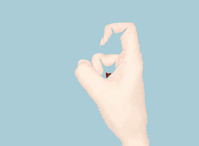 Step1:将右手食指弯曲,呈现鱼钩状。