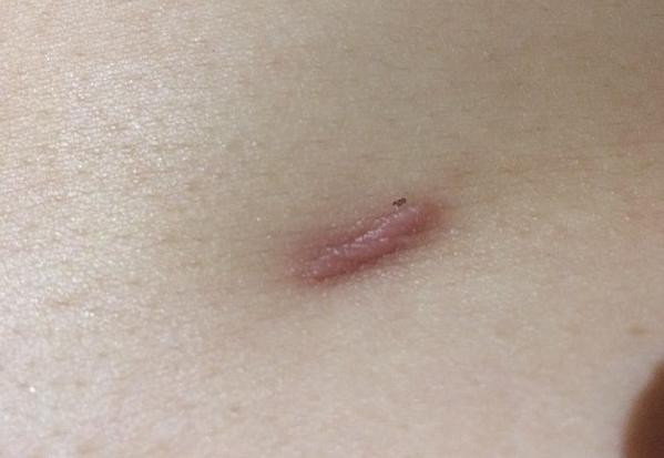 图说:纪女士自拍取肋软骨后的伤口疤痕 来源/受访者供图