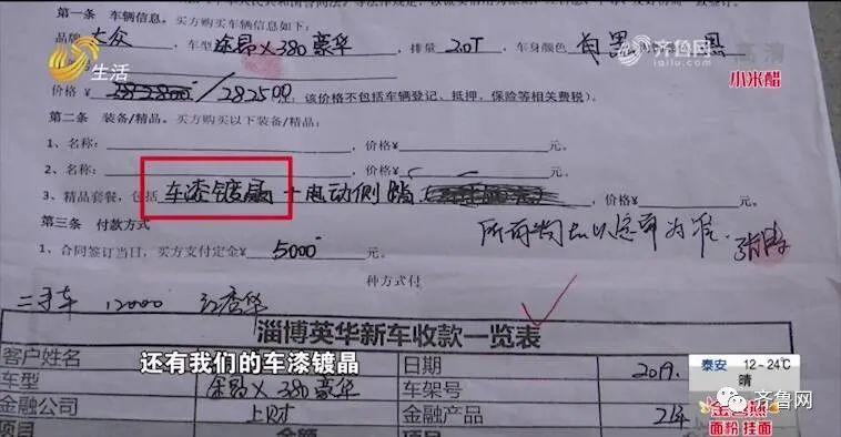 对于张先生提出的车辆镀晶的问题,4S店工作人员张女士解释说:“我们所有镀晶都是这么做的,我刚才说的我们准备车辆,只要能提前装好的,像大包围脚垫,还有我们的车漆镀晶。除了贴膜装侧探这些后置的,像我们落完户才能装的东西,其他都是提前装,这个是新车交付的检查单,这是新车交付的时候客户自己签的字,检查是没有问题的。”