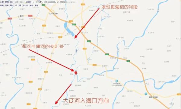 同时,6月16日,中国人与生物圈委员会委员、沈阳动保专家周海翔与辽中动保志愿者进一步沟通,确认海豹出现位置在蒲河沿大闸“下游”。周海翔告诉记者,这个“下游”关键。斑海豹每年10月末从韩国的白彾岛及西太平洋来到渤海辽东湾。1-2月份在辽东湾冰面上产子,其中营口大辽河口、盘锦辽河口、大连长兴岛都是它的繁殖地。盘锦辽河入海口和营口大辽河入海口两处都可能出现海豹顶流游往淡水的情况。两条河流逆流走向沈阳的路线依次为:1、营口大辽河入海口—大辽河—浑河—太子河蒲河交汇点—浑河—蒲河(沈阳段);2、盘锦辽河入海口—辽河—绕阳河辽河交汇点—辽河(沈阳段)。蒲河海豹出现在第1条线中,从营口大辽河口到蒲河沿大闸大约190多公里。