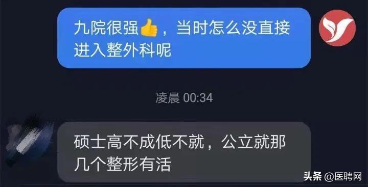 提及为什么当时没能进九院的整外科,该医生言语中颇有失落:硕士高不成低不就,公立就那几个整形有活。