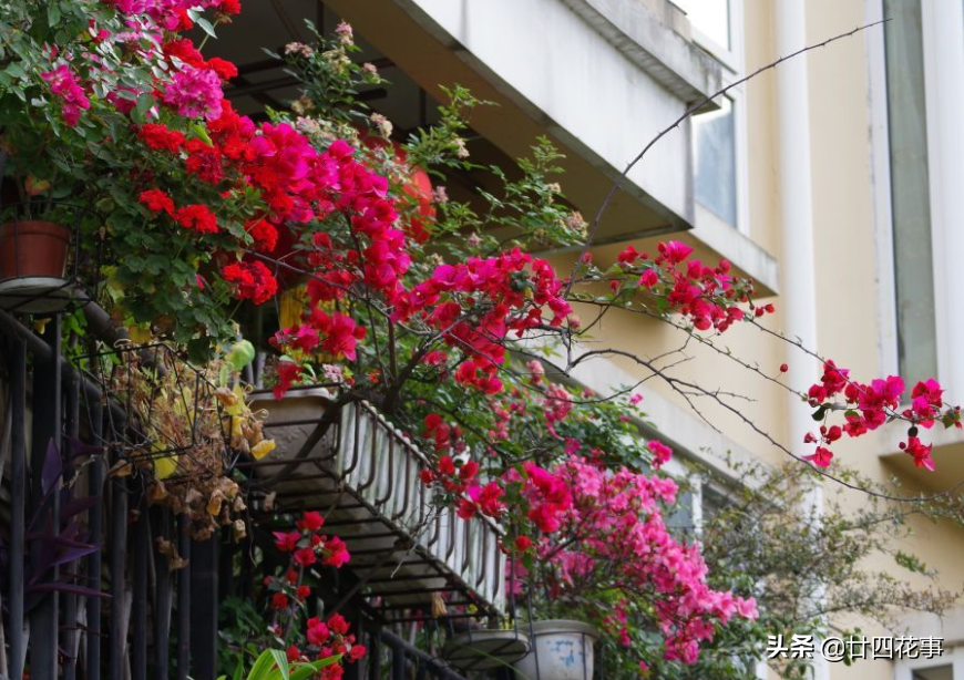三角梅花色繁多,十分绚烂,不管是养在阳台还是庭院都吸睛,所以很多花友都在养这个“小三”。不过不少新手小伙伴发现,自己养的“小三”总是枝叶茂盛,而开花却少得可怜,也学着一些教程给它晒太阳和控水了,但仍然见不到效果;而反观一些前辈大神,没见怎么给它控水,三角梅依然是一波接一波地爆花,这是怎么回事呢?接下来咱们来学习一下,怎样才能让三角梅勤开花而且多开花。