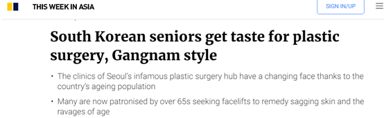 越来越多老年人去做整形手术的背后是韩国步入老龄化社会 的现实。