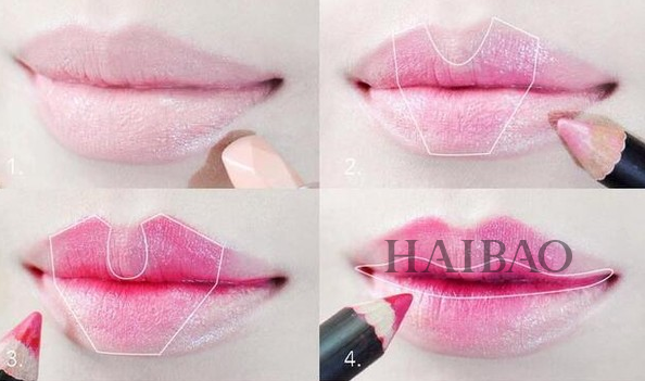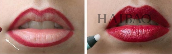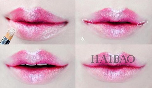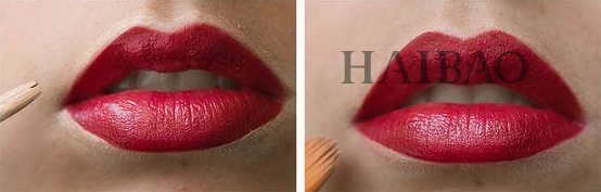 Step3:如果想要颜色更鲜明,可利用颜色更深的口红,在唇周两侧晕染!
