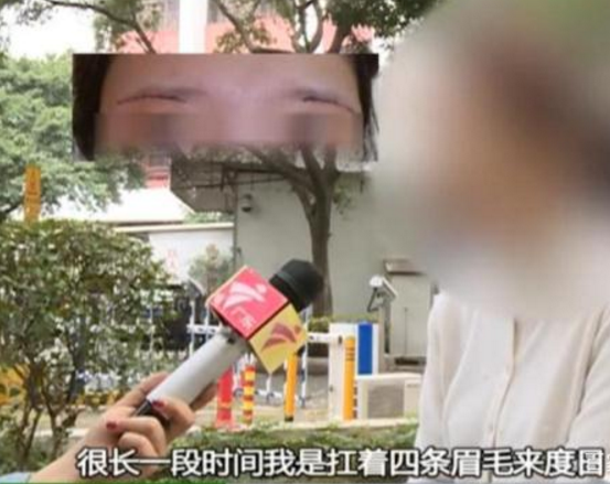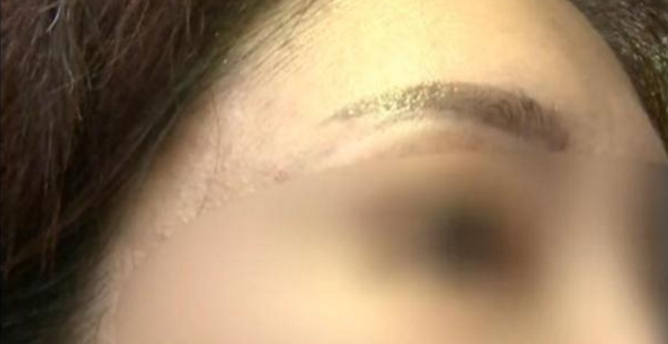 在手术过程中,李女士表示很心塞,因为术手缝合时医生称线不够,所以当时给李女士缝线是一边7号线一边5号线,二边的线是不一样。记者在现场也看到李女士二条眉毛附近各有三厘米的疤痕。
