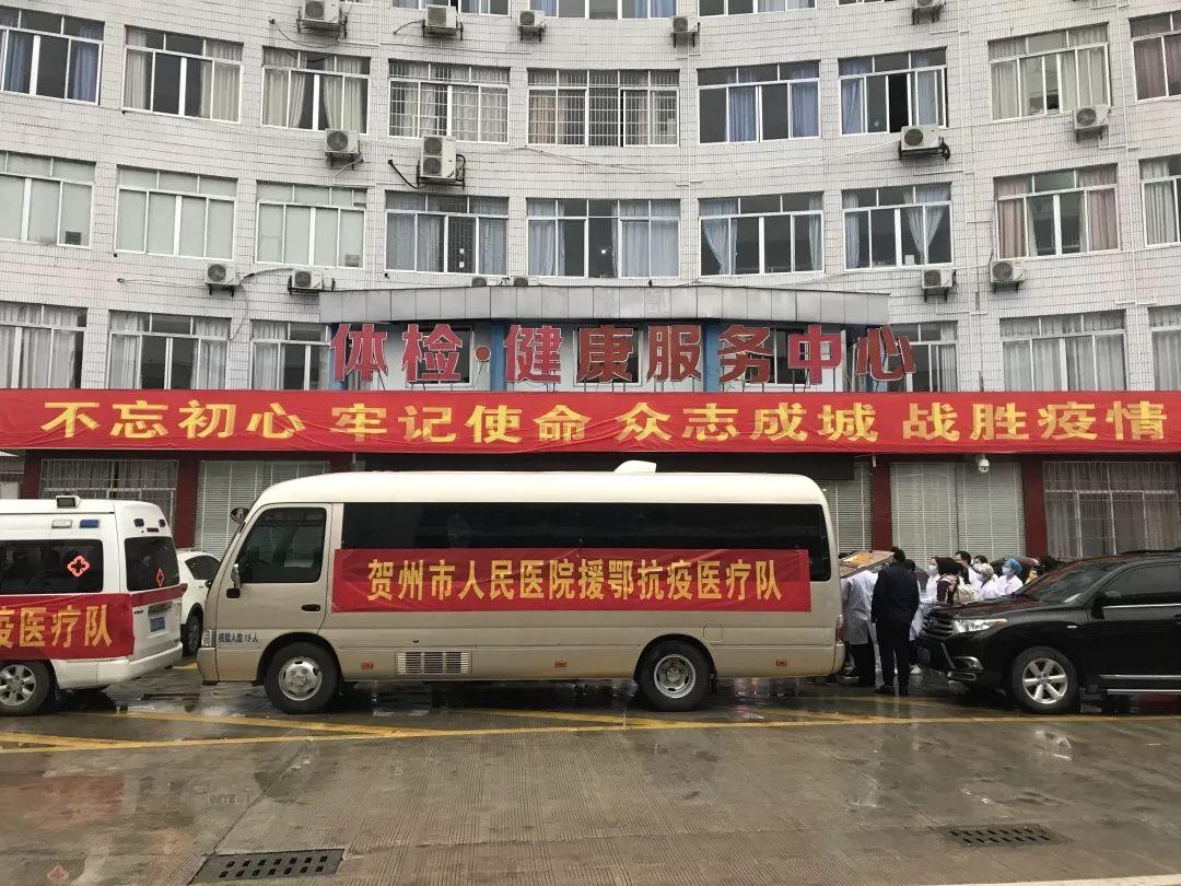 早上7时许,贺州市人民医院援鄂抗疫医疗队出征仪式举行。