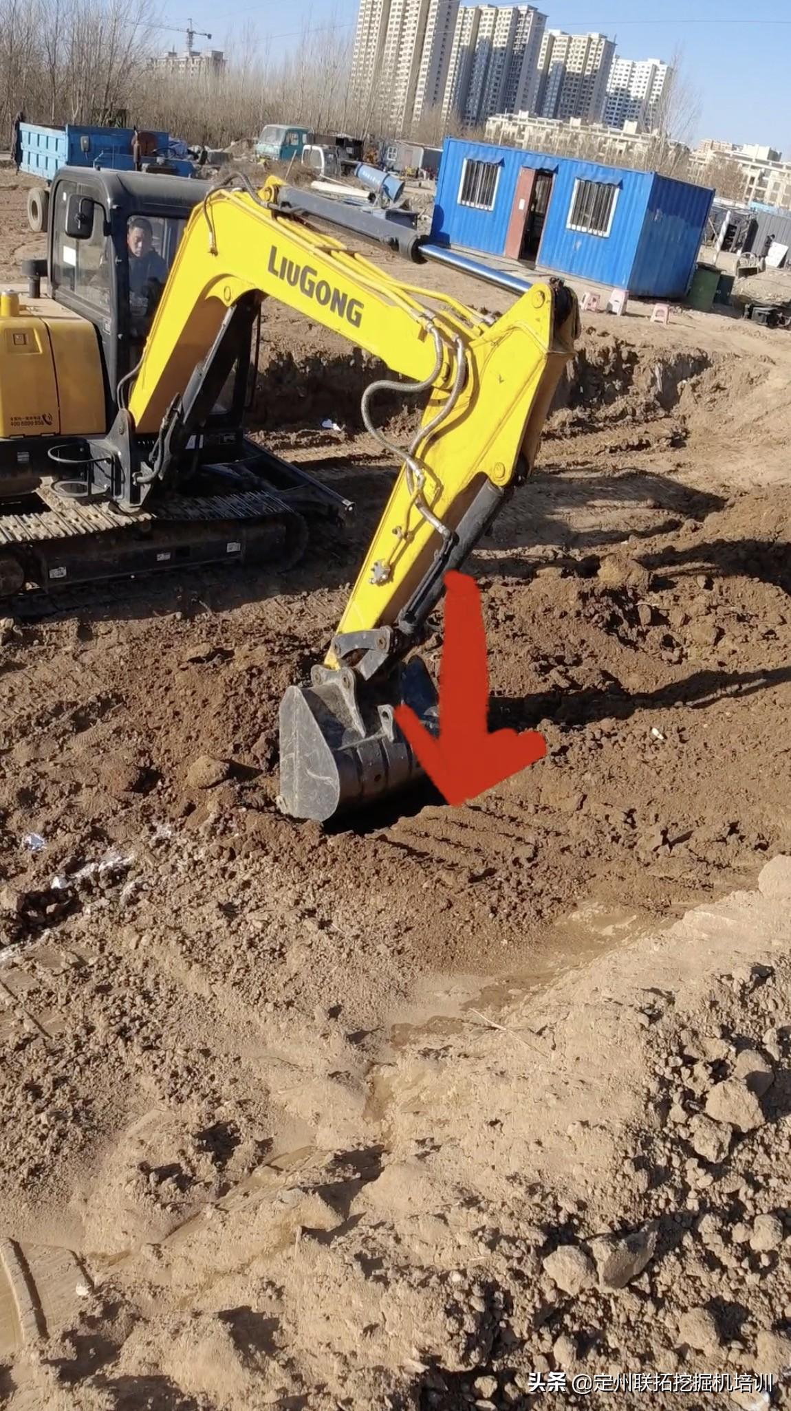 后我们再说一下刷坡挖机的站位,站车的位置也的重要,我们的挖机站远了够不着,站近了我们的大小臂伸不开,当然我们站车的距离也要根据挖机的大小,所以我们干活之前先试一下车的位置,觉得位置不好,我们在把车挪到合适的位置。