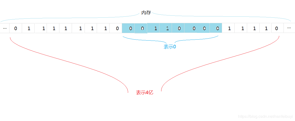 在内存中,表达整数0我们可以用 00110000,表达整数4亿我们可以用 00111111100011000011110。