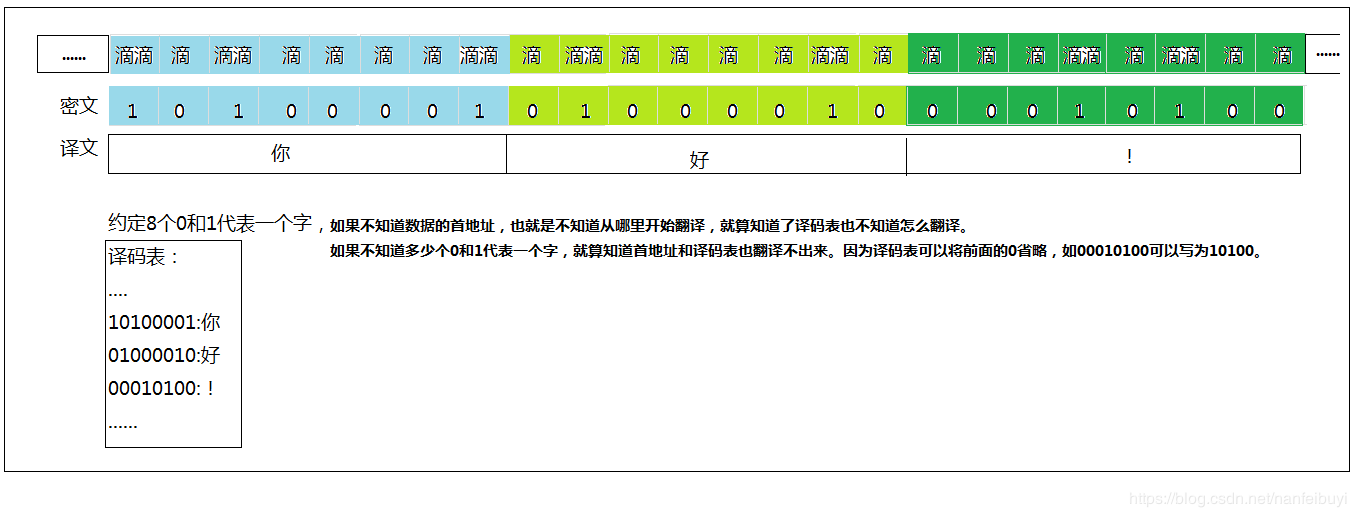 上面这样子表示,我们可以知道这一段的0和1表示这整数0,那一段0和1表示4亿,但是实际上我们“看”不到内存,我们不知道从这个位置开始,到哪里结束表示着一个数据。我们需要明确规定多少个0和1表示一个整数,假设我们约定8位0和1表示一个整数,这样我们知道了内存首地址,往后读取8个0和1然后就可以读取到一个数据(整数)。就像加密的电报一样,"滴滴"表示1,“滴”表示0。按照多少个0和1代表一个字,才能正确的解密。