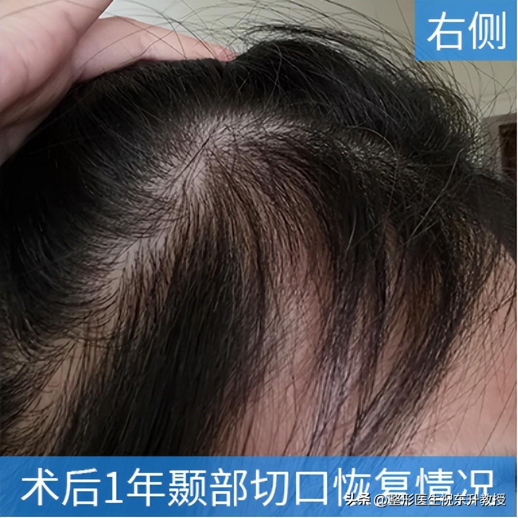 这是手术一年后求美者反馈的照片,既没有因为手术切口留下一块不长头发的地方,也没有留下难看的疤痕,恢复得还不错吧?
