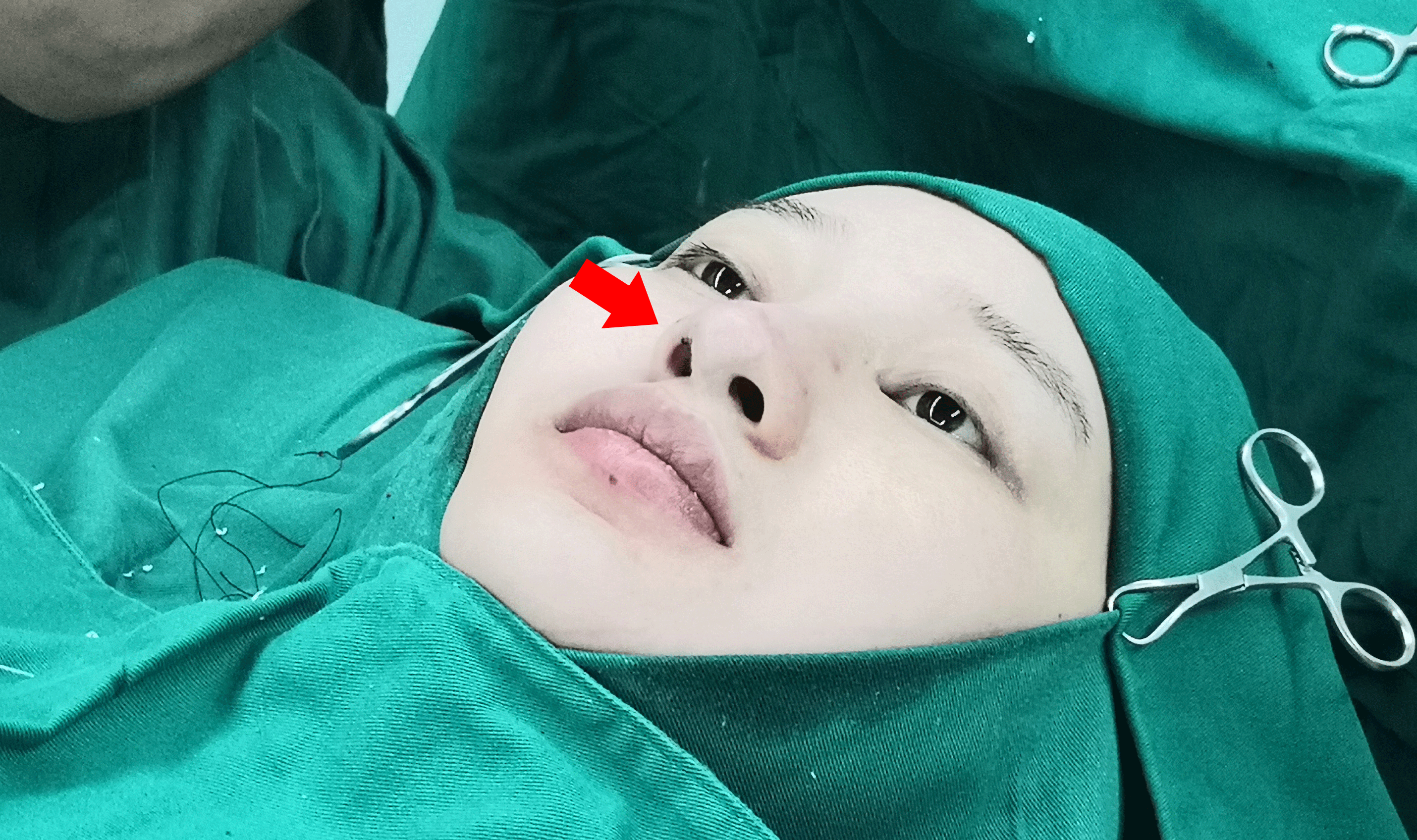 而我做膨体鼻整形,创伤很小,出血也不多。这位小姑娘又是初鼻,给她剥离腔隙的大小合适。而且,我还有一个独门小秘诀,就是在缝合伤口时,不缝得那么密,让它稍微有点空隙,流出的血可以在压力增高的情况下自行流出来,这样就不会造成过度肿胀,当然也就不需要插引流管、带夹板了。