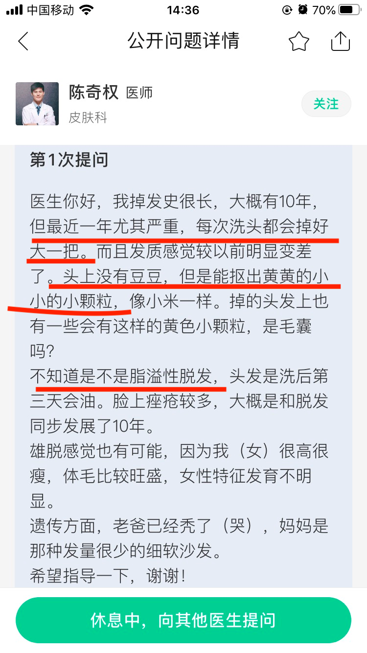 平日线下门诊人多时间紧张,往往没机会充分沟通;而在线上问医生,沟通体验就好多了。