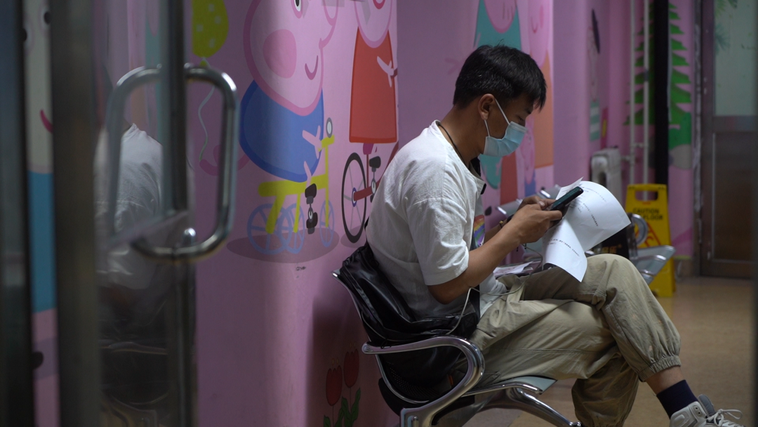 ▲ 儿童医院门口,王耀祥在等号。潘颖欣 / 摄