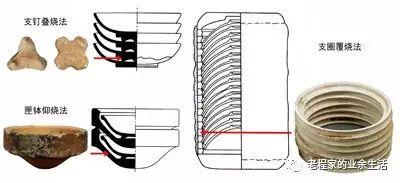 (1)支钉叠烧,古代多用此法。(2)支圈叠烧,如定窑。(3)重合叠烧或刮釉叠烧,即在器物内心(以盘碗为多)刮去一圈釉,然后将叠烧器物底足(无釉)放置其上,一般10件左右逐层重叠,金代产品盛行此法。它的优点是产量高,成本低;缺点是器物内量一圈无釉。