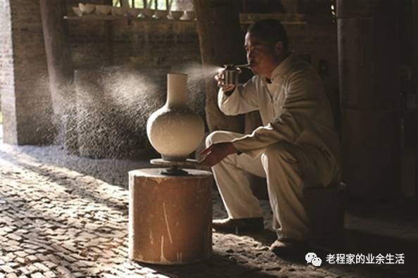 荡釉——是我国传统的施釉方法之一。操作时把釉浆倒入器坯内部,然后晃荡,使上下左右均匀上釉,多余的釉浆倒出即成,这种方法适合于瓶、壶等琢器。