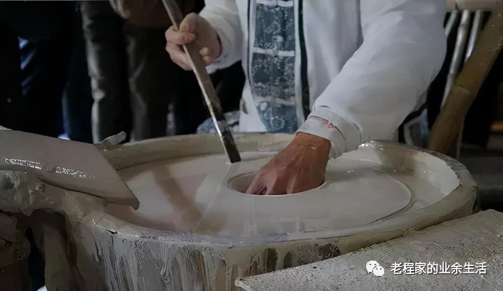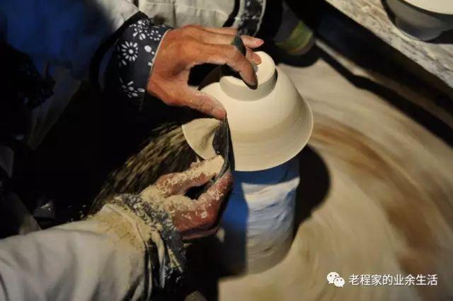 利坯——拉成的坯半干时,置于辘轳上,用刀修整,使器表光洁,厚薄均匀,这道工序称为利坯。这是器物整形的关键步骤。