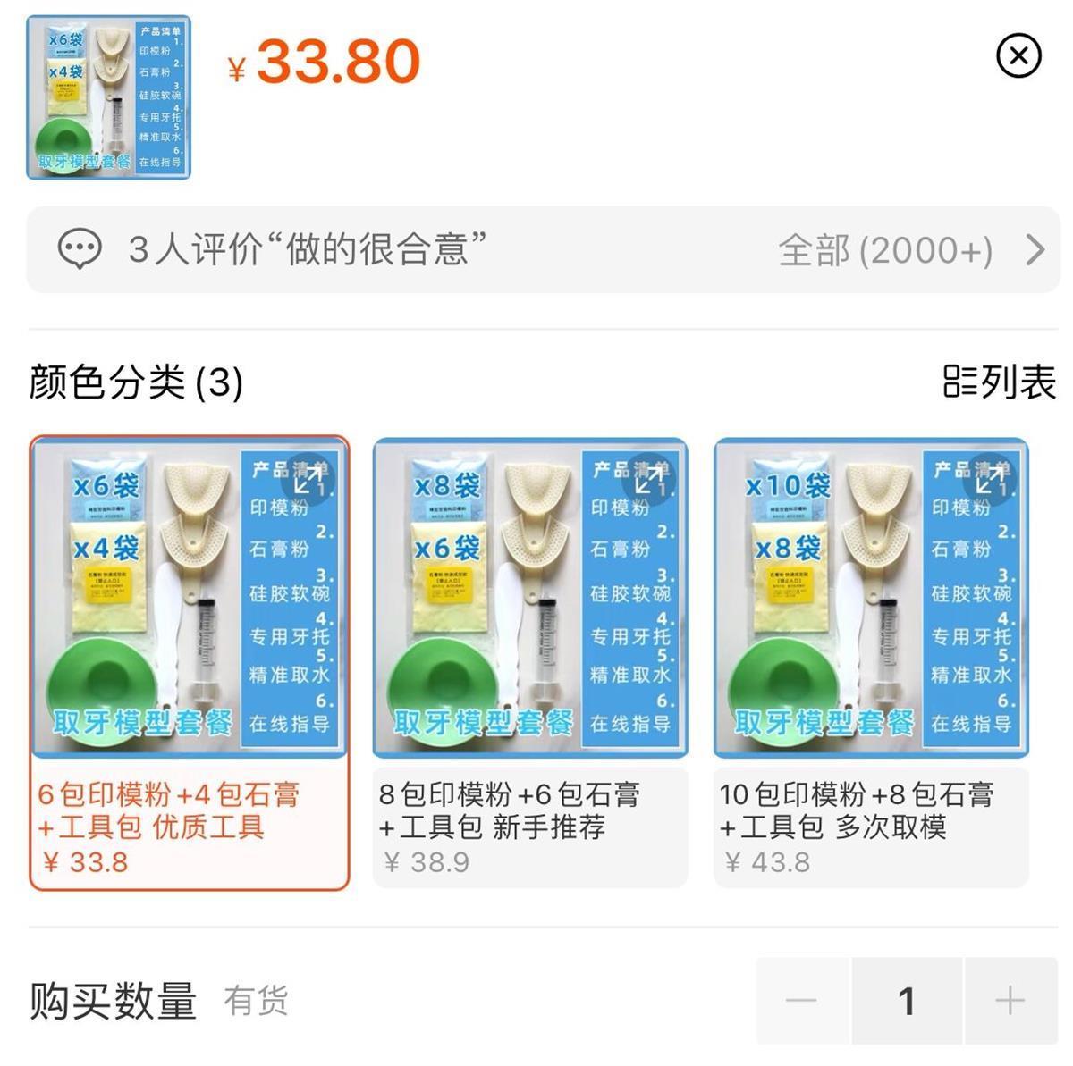 购物网站上,自制牙模材料仅需33.8元(来源:网络截图)