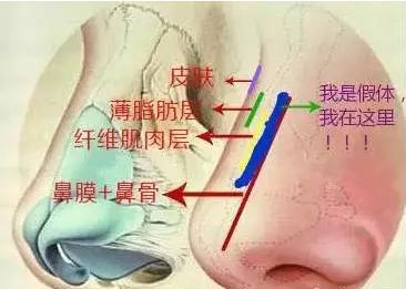 大林之前科普过,隆鼻假体的放置层次跟手术的原理决定了,假体不会轻易戳出来,更不可能做完后,假体会在鼻梁上任性游动。