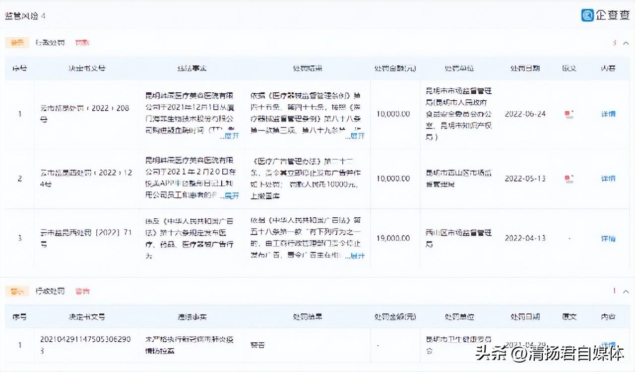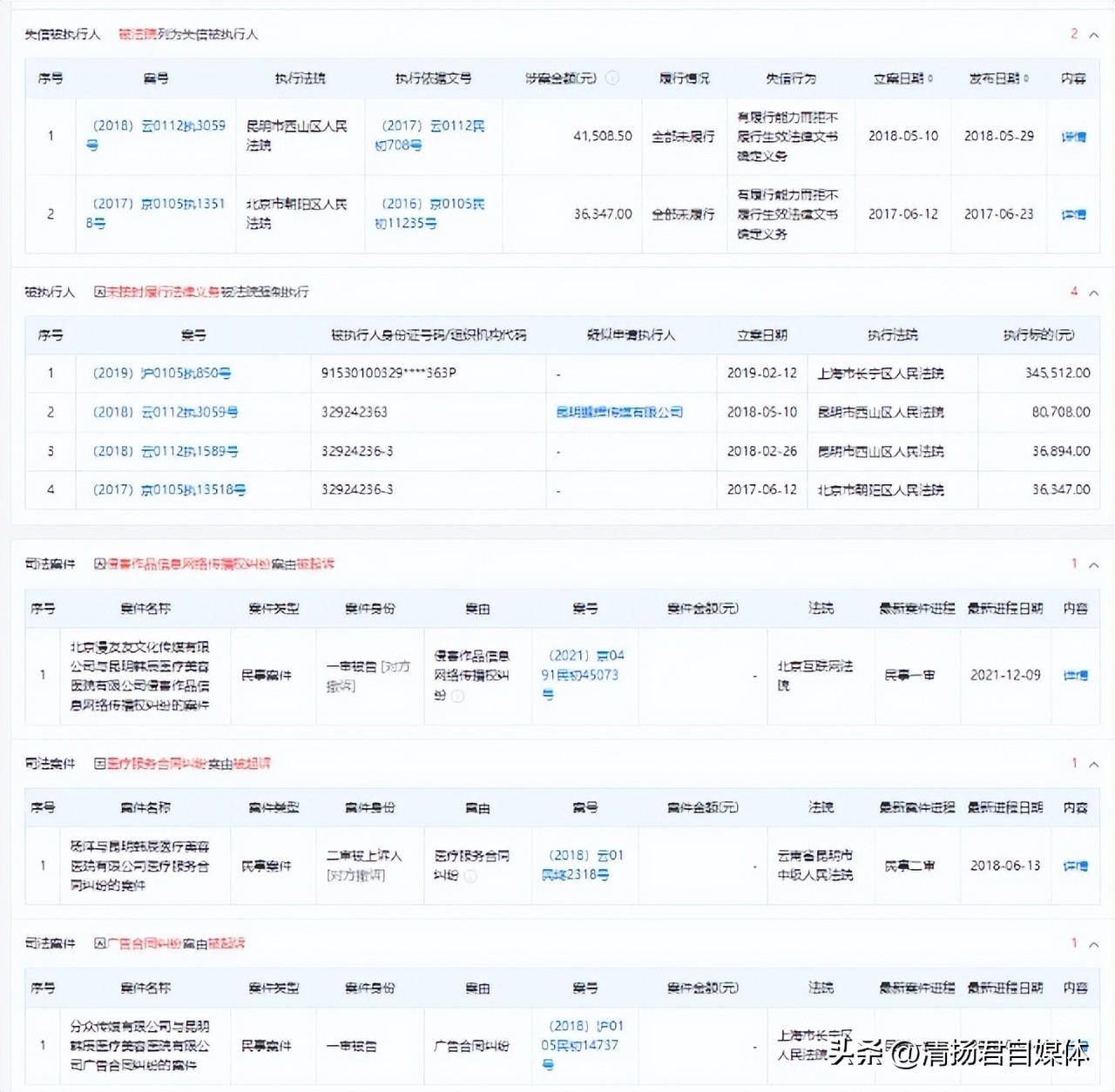 同时,昆明韩辰还因广告纠纷、医疗服务合同纠纷、侵害作品信息网络传播权纠纷被起诉。