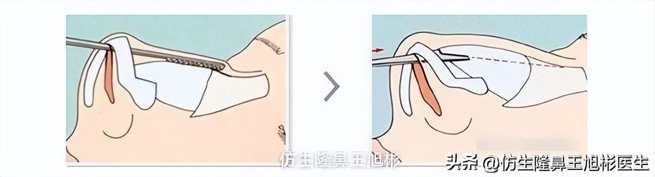 二是提高相对下垂的鼻尖,从而达到矫正整体的轮廓的效果。