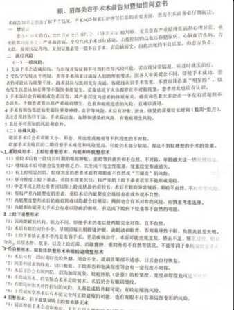 潘女士付齐100万,并接受第一项手术,外切去除眼袋。进手术室前,潘女士签署了《眼眉部手术知情同意书》,其中提示手术存在瘢痕及色素沉着风险。因特别在意此问题,潘女士在文末手工书写道:“本人疤痕体质,请医生注意。已阅上述内容,同意手术。”