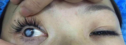 3岁时,家住枣阳的刘静被扫把砸伤眼睛,当时疼痛流泪不止的她被家人送往医院调节,但随着年龄增长,刘静右眼的角膜出现逐渐发白的迹象,这黑眼珠上的白斑不仅十分影响外观形象,也给她的生活造成了诸多不便。由于没有好的医疗条件和技术,这白斑一跟着她就是近20年。在当地多家医院求诊的她,均被告知去除白斑的方式就是摘除眼球后植入义眼片。不愿摘除眼球的她在同乡的介绍来,于今年1月刘静抱着后的希望来到武汉爱尔眼科医院,寻求解决办法。