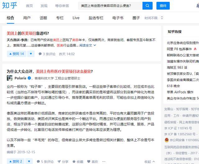 在知乎上,也有很多网友提出“为什么大众点评,美团上有些医疗美容项目这么便宜?”的问题。其实这也就如同我们在网上看到很便宜的租房信息,那其实就是中介为了骗取用户所使用的“钩子”,在到达现场后在推荐其他房租进行出售。