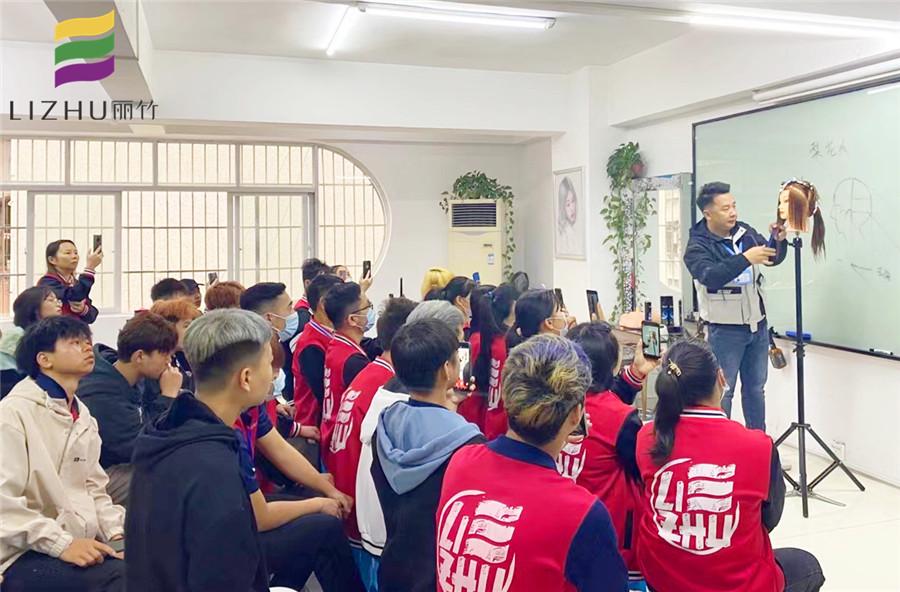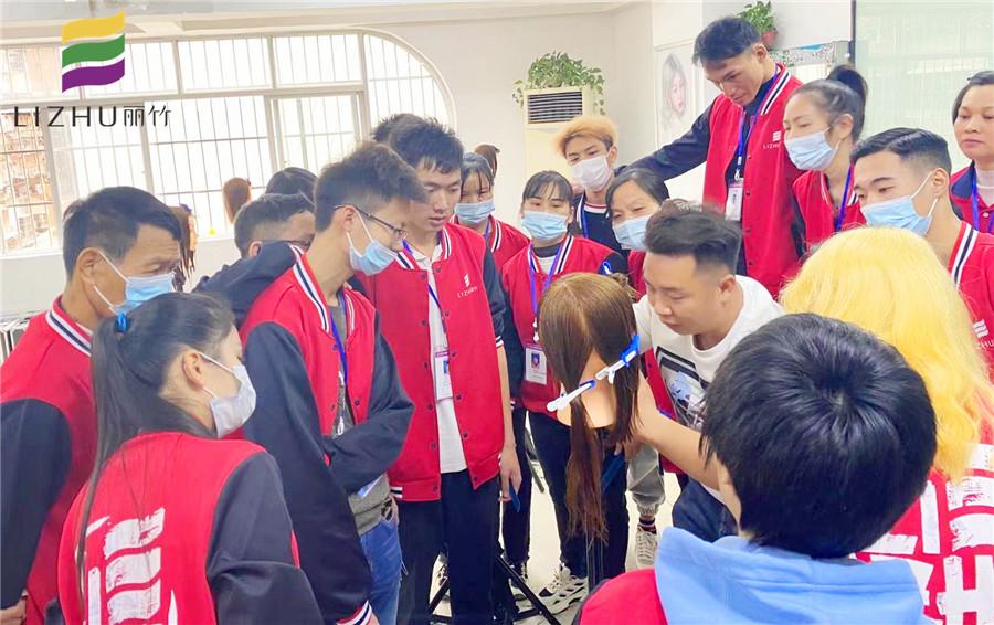南宁美发学校分享:在南宁美发培训班(丽竹美发培训班)的教室里,刘主任正在给学员们讲解一款新发型的修剪过程。在进行教程学习之前,我们先和学员们一起了解下,什么是梨花头?