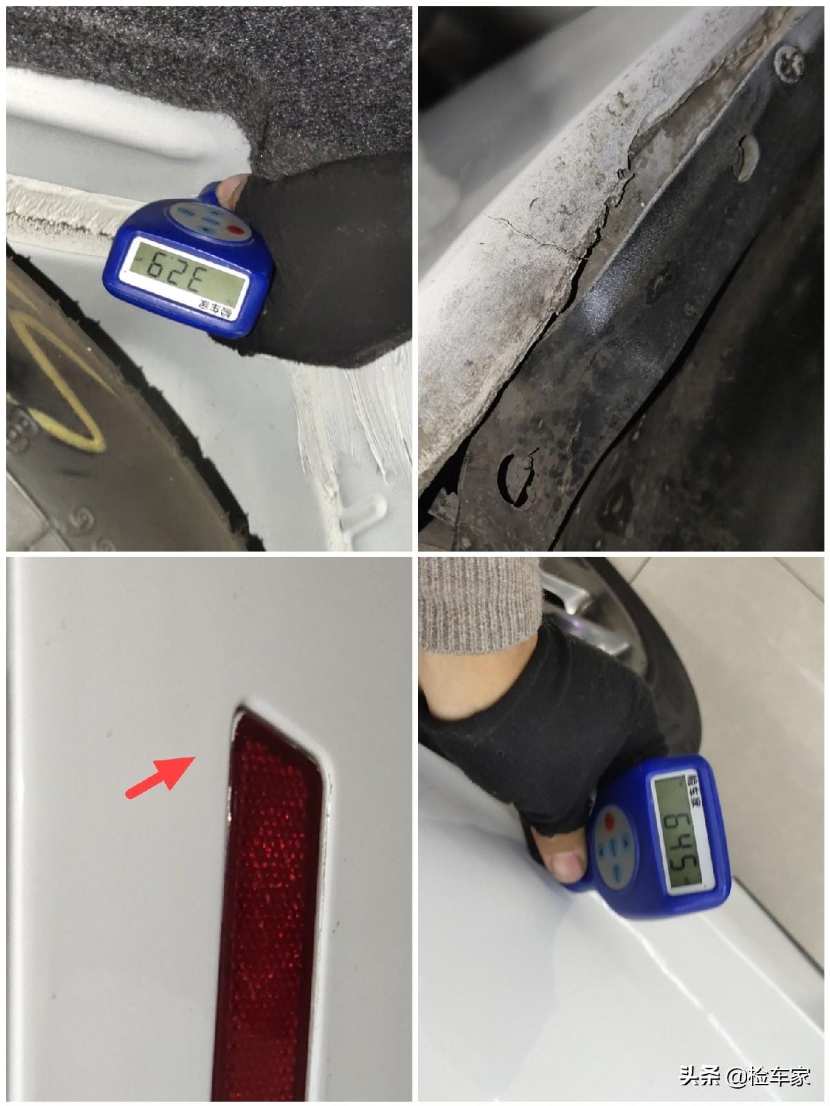 后保险杠有的喷漆痕迹,而且还有点破损的迹象,不过里面后围板没有变形,备胎槽还是原版状态,车屁股没事,过!
