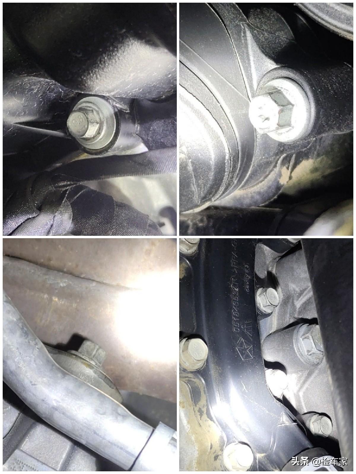 车子升起来之后,小林子直奔发动机下面,油底壳有过拆装,发动机和变速箱的连接螺丝也有过拆装,加上下面的棘爪也拆了,由此完成了后的闭环,发动机吊装分解大修实锤了!