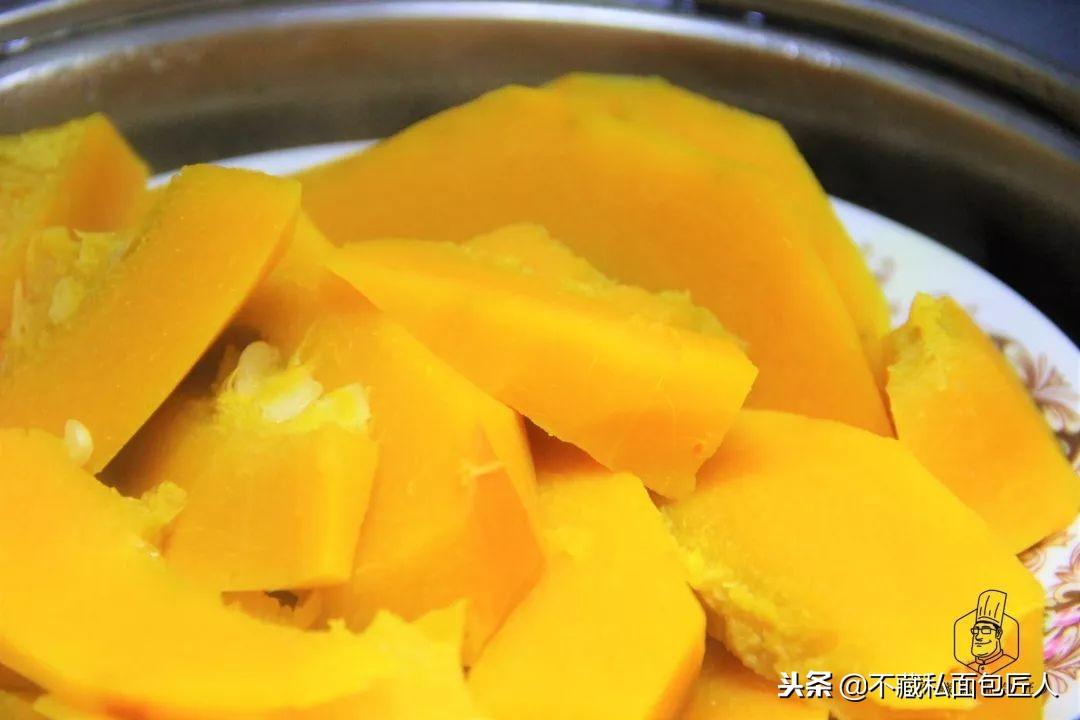 3、南瓜不需要搅碎再使用,因为蒸熟后已经成泥了。