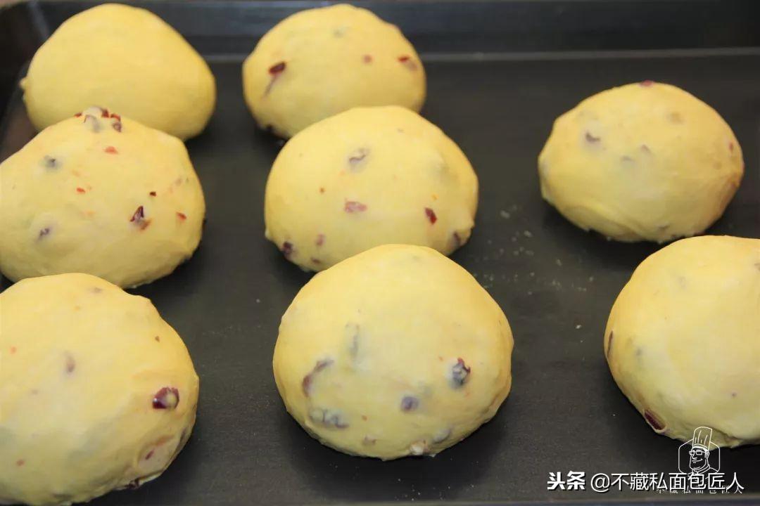 分切:50g/个,共分切10个,滚圆再次醒发20分钟。