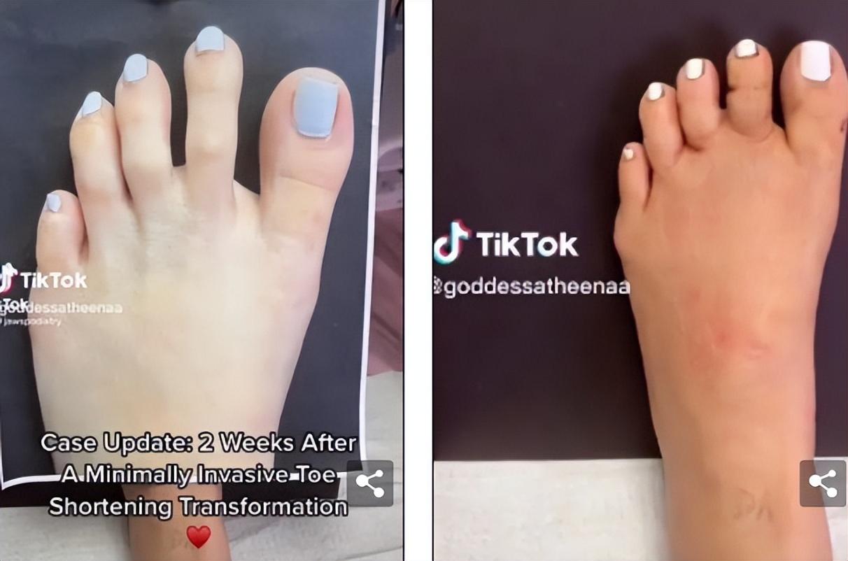 几天后就到了拆线时刻,纱布摘下,雅典娜终于拥有了梦寐以求的短脚趾,发视频展示了前后对比照…