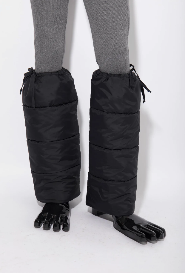 青蛙掌+羽绒脚套的组合,你说它是认真护小腿吧,但怎么看怎么奇葩。