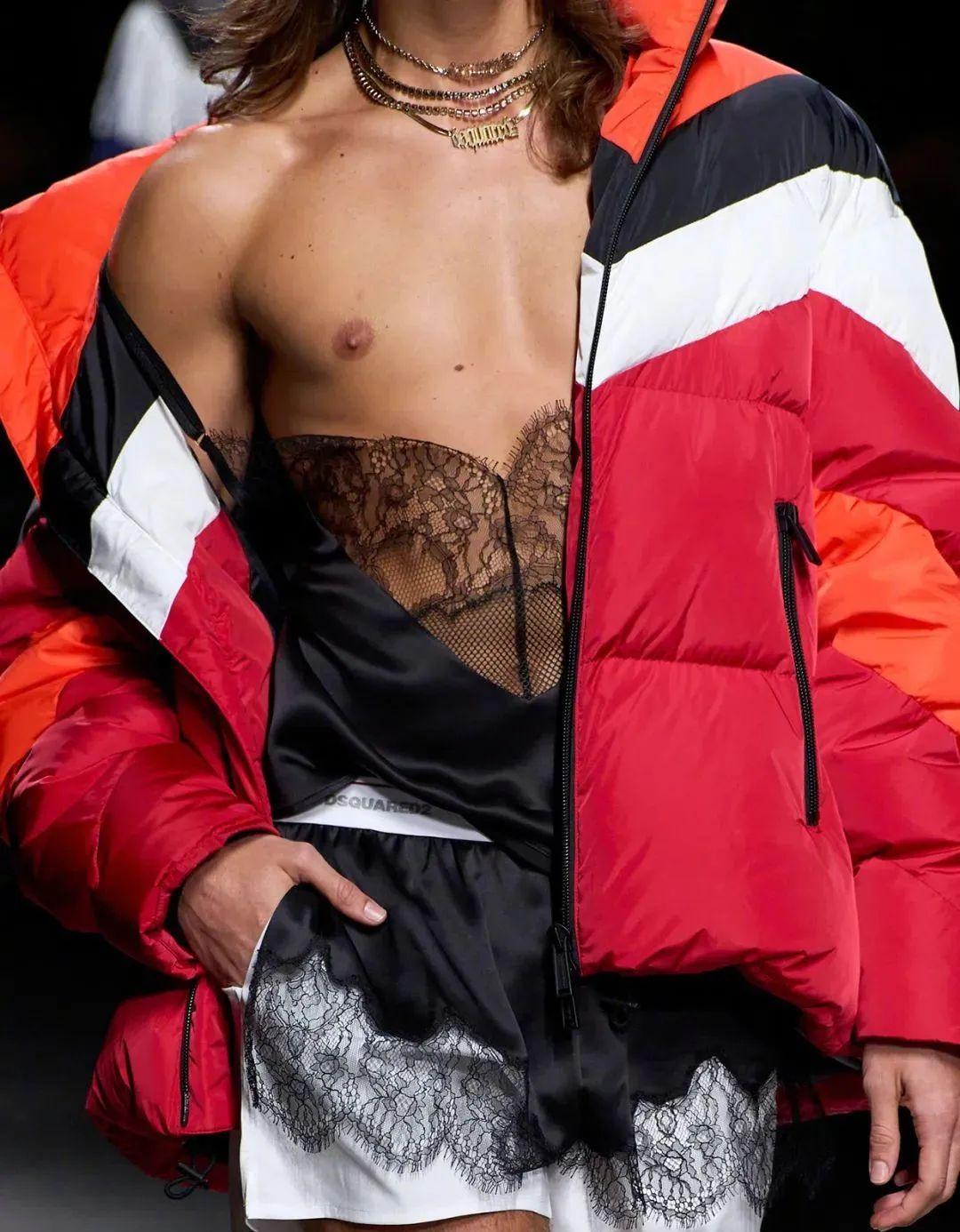或许是为了跟上内衣外穿这股潮流,本届男装秀场也开始整蕾丝单品