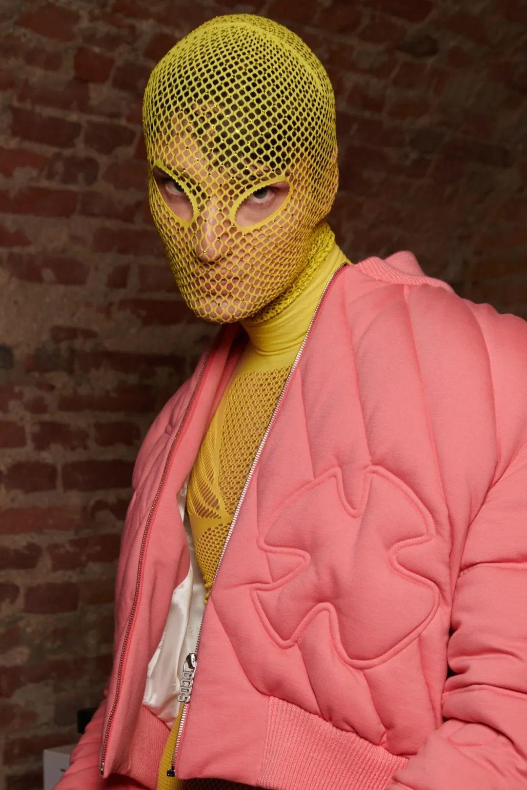 没做好时间管理的模特小哥,带着黑眼圈和他的蝙蝠侠头套来到秀场开工。
