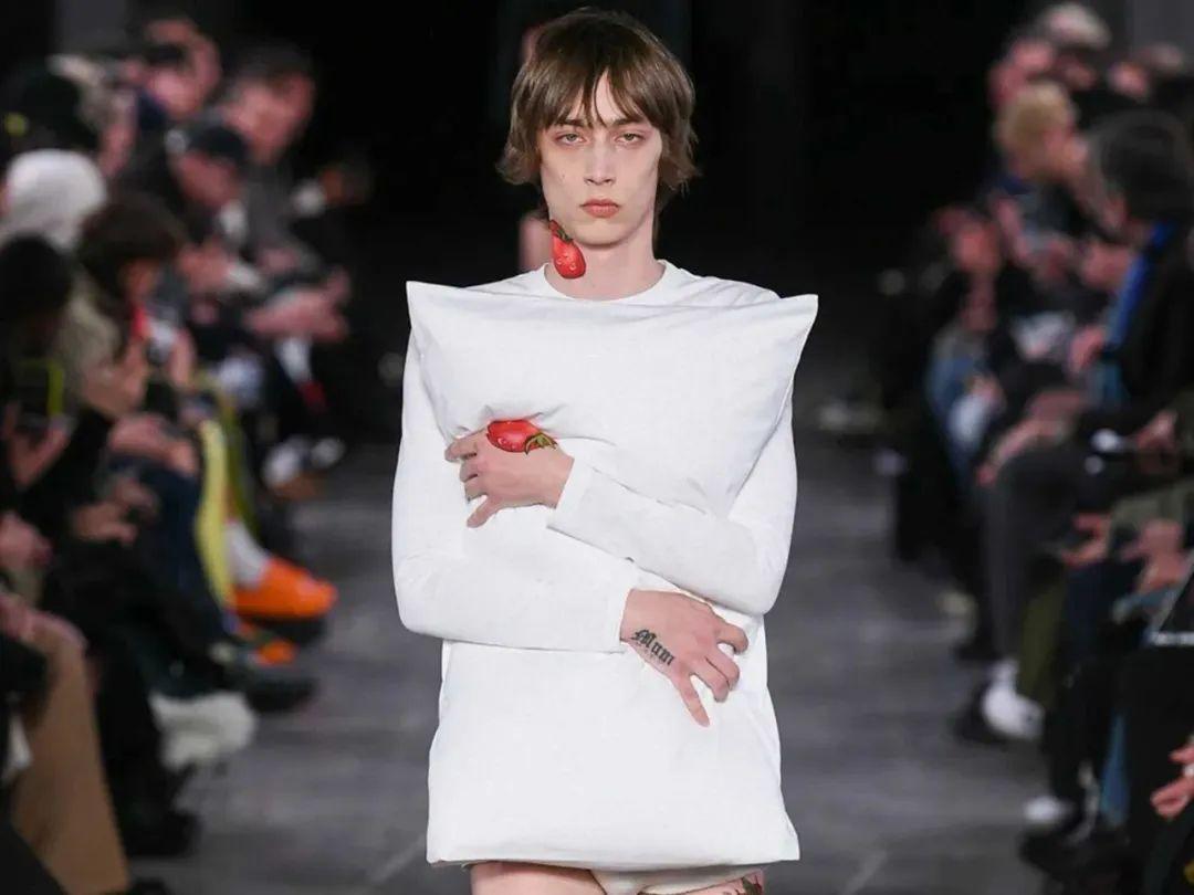 有的秀场设计师则直接摆烂,让模特抱着枕头走秀