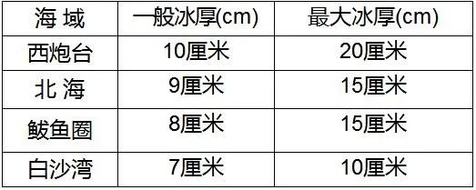 今天上午到明天上午,辽东湾浮冰范围40-50海里,一般冰厚5-15厘米,大冰厚20厘米。营口海域一般冰厚5-10厘米,大冰厚20厘米。