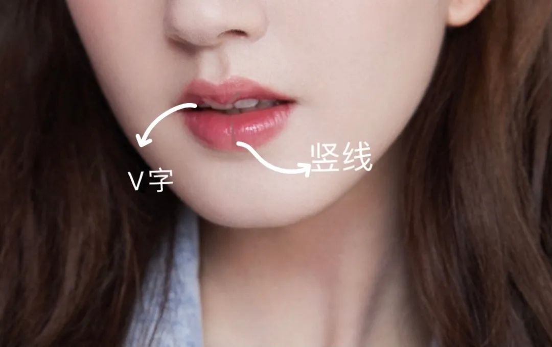 接着用深色唇线笔补充细节,简单点说就是在下嘴唇正中线的位置勾一条竖线,然后在上唇的唇珠位置画出V字。