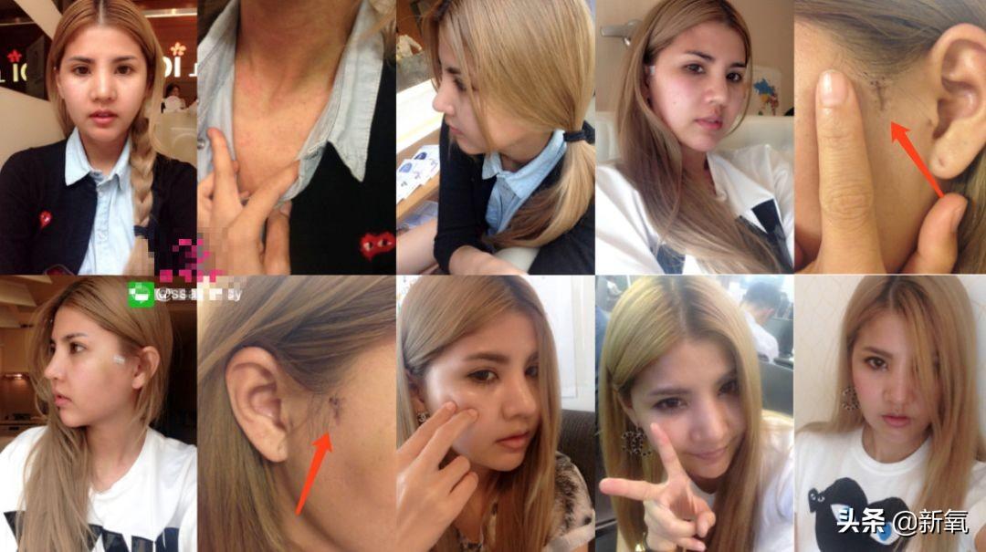 不完全统计,她做了第六次隆鼻手术、第二次Vline轮廓、丰唇、开眼角、面部提升、拉皮、臀部吸脂、腰部吸脂、打等等。