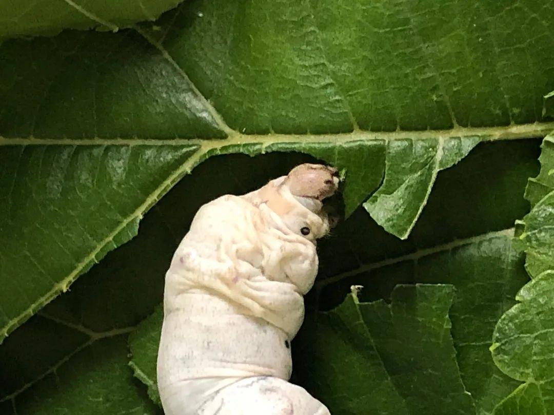 那时我不知道,会只剩下后一条蚕。放大镜下,一百条蚁蚕匍匐在桑叶上,像一百头无知无畏的小兽穿行于森林。发丝般柔细,灰白色的头部,墨绿色的身体,毛茸茸的足。足有八对,三对胸足把持桑叶进食,四对腹足驱使身体前进,一对尾足附着在桑叶上。此时,它们正用力跨出腹足,身体向前推进,头部扭向身后,像一头头回望的小鹿或幼狮。起初,它是桑树的害虫。五千年前某一个清晨,也许午后,一位先人发现了它吐丝的秘密,从此,它被人类驯养,涅槃为丝,前往深邃和广阔,美如浩瀚苍穹。我将一百头小兽连同桑叶的森林倾斜着倒进了另一个世界——一个钻了四排小孔用于透气的塑料盒,用一根很小的鹅毛,将粘在桑叶上的它们轻轻扫到了新鲜的桑叶上。它们仿佛蠕动了几下,又仿佛没有,实在太小了,看不清。它们来自湖州某村某个养蚕人家,被装在一个快递包裹里,穿越2019年暮春的一场雨,来到了杭州春江花月小区的丰巢柜。我捧着包裹穿过雨地,在电梯里遇见邻居家的一条大狗,感觉到它亲昵地逼近,我本能地将包裹紧贴前胸,脑海里奇怪地跳出了几行诗①: 农桑将有事,时节过禁烟。轻风归燕日,小雨浴蚕天。 当它们还是一粒粒蚕种时,它们曾被哪个女人紧贴在胸口孵化?经过了谁的双手喂养?伴随它们而来的,是一整套微型养蚕工具和两个保鲜袋的桑叶,据说放在冰箱里能供它们吃半个月。我用清水将一片桑叶冲了一遍,用纸巾轻轻沾掉叶面上的水,晾了五分钟,又用开水冲洗过的剪刀将桑叶剪碎覆盖在它们身上。十来分钟后,桑叶出现了一个个小小的孔洞,探出了一头头小兽的脑袋。一百头勇猛的小兽,在食物的森林里奔突奋进,狼吞虎咽般啃噬着桑叶,如镰刀收割麦浪,风卷着残云。我仿佛看到,湖州新市镇勇兴村秀才桥沈桂章家,十万头勇猛的小兽,正在桑叶的森林里奔突奋进,发出春雨打在万物之上的沙沙声,整个天地被雨声织进了一只巨大的茧里。这是我第一次养蚕,这一百条蚕于我,不是一百条蚕,而是沈桂章家的十万条蚕。我们相约一起养十万条蚕,但我无法和他们一起日夜亲手喂养十万条蚕,便在家喂养一百条蚕,假装和他们一起喂养了十万条蚕。之间相隔六十公里。我将盒子放置在书房的书桌上,将两朵从湖州含山蚕花会上带回的蚕花放在盒子旁,祈祷一百条蚕平安。笨拙如我,未必能养活一百条蚕,但沈桂章家的十万条蚕一定会平安,一定要平安。