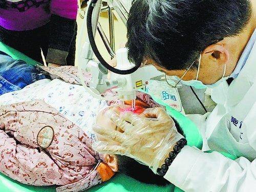 医生给小宇敷麻药。