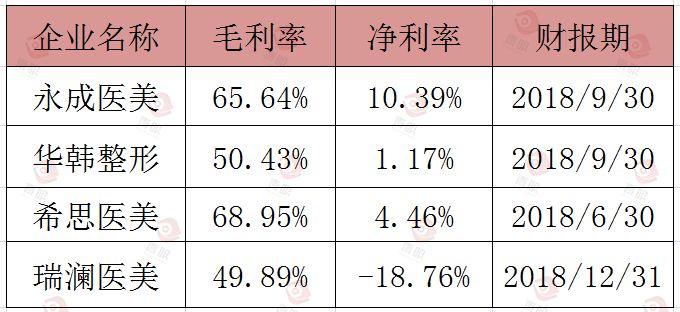 除此之外,为医美机构提供玻尿酸原料及相关产品供应商华熙生物,或将作为涉足医美的企业登陆科创板(详见:《净利率高出行业2倍的华熙生物,或成登陆科创板的美妆企业》)。2016-2018年该企业净利率分别为36.7%、27.1%、33.6%。