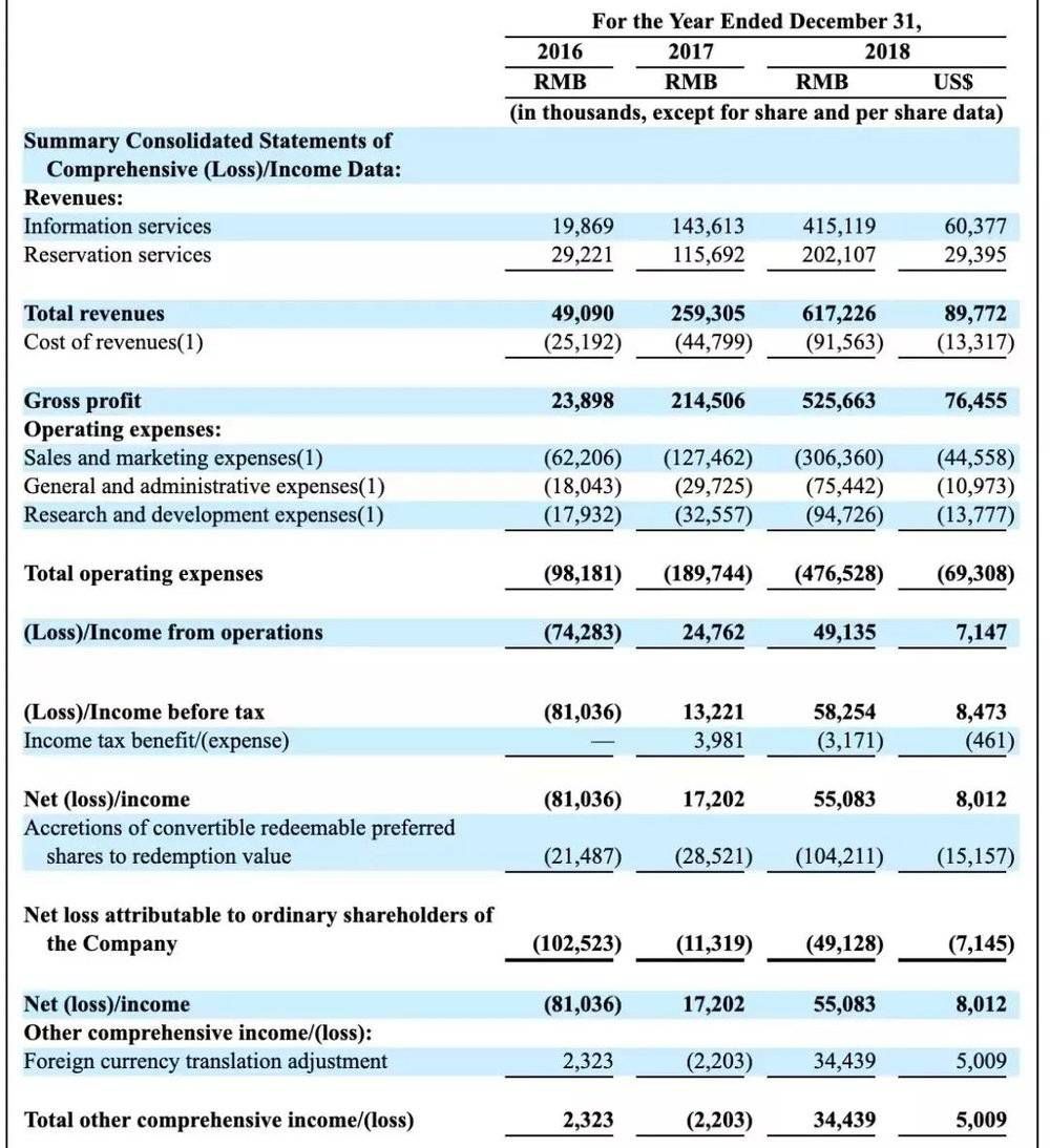 新氧的经营数据显示,其正处于快速成长期。招股书披露,其总营收从2016年0.49亿元上升至2017年的2.59亿元,增速高达428%;2018年总营收增长138%至6.17亿元。从2017年其开始实现盈利,净利润达到1720.2万元;2018年同比大幅增长220%,达5508万元。