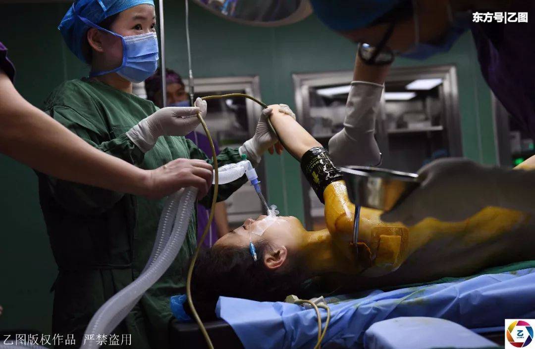 由于体质不一样,每个人对麻醉的反应也不一样。手术结束不到5分钟,王一一就有了反应,此刻她再次体会到术后的疼痛。因为疼痛,王一一的眼角挂满泪水。面对呼喊她名字的麻醉师,王一一没有应答,而是问麻醉师:大吗?好看吗?图为手术台上的王一一。