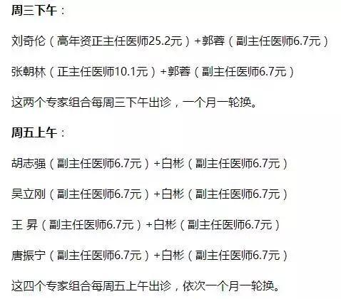 具体出诊专家职称、挂号费、组合及出诊时间: