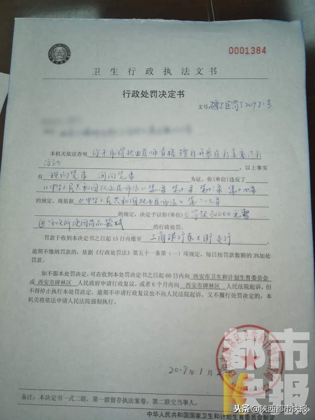此前我们《都市快报》曾报道过西安市存在的私自给人打、做微整形等违法行为,经过西安市碑林区卫生计生综合监督所的查处,相关处罚结果也出来啦。