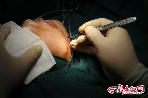 下午2点钟左右,7楼手术室,小花术前全麻醉,由杨晓光主刀为其手术。术前的准备工作,包括消毒,对手术位置进行画线。基本程序完成之后,开始了第一期的修复手术,主要是针对面部恶性瘢痕的第一期修复,使瘢痕淡化。下午4点多钟,手术成功,小花从手术室出来后,进入了观察室。
